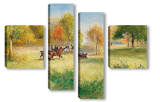 Модульная картина Езда офицеров в парковой зоне Езда офицеров в парковой зоне