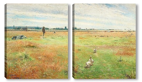 Модульная картина Пейзаж с гусями Пейзаж с гусями
