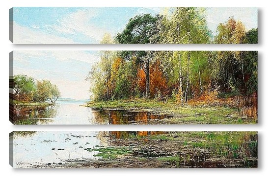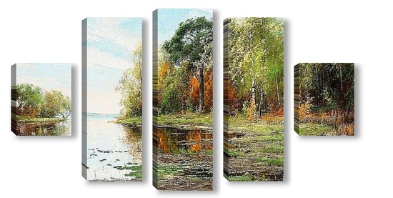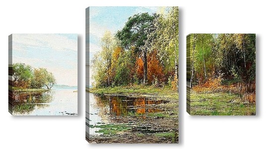 Модульная картина Озеро.Пейзаж в осеннем цвете Озеро.Пейзаж в осеннем цвете