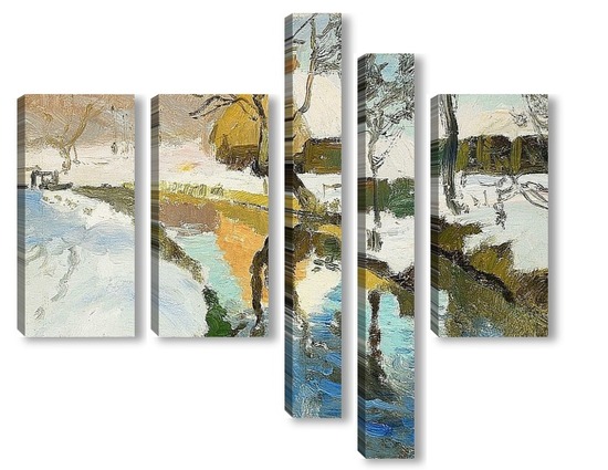Модульная картина Зимний пейзаж и Сельскохозяйственное владение на реке Зимний пейзаж и Сельскохозяйственное владение на реке