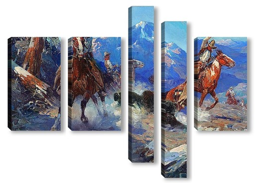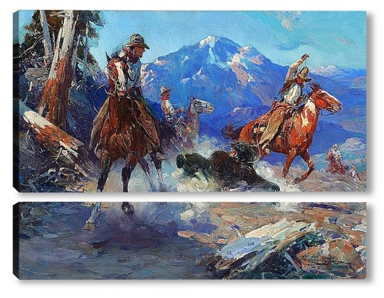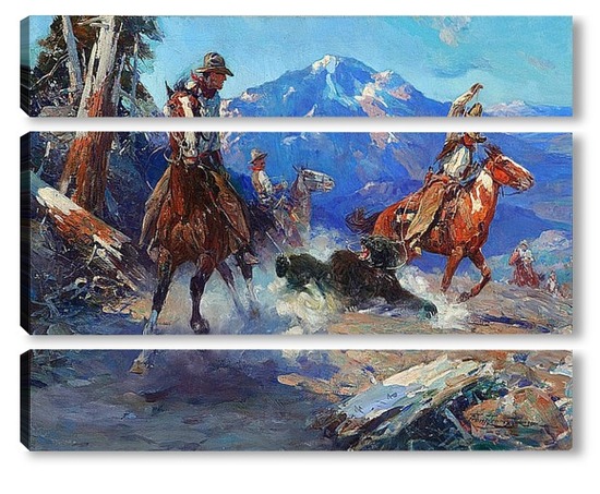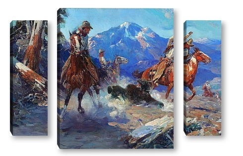 Модульная картина Ковбои ловят арканом медведя Ковбои ловят арканом медведя