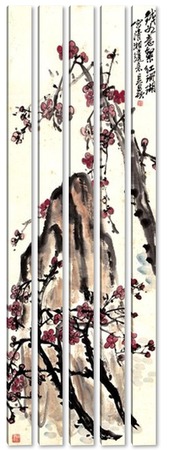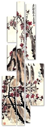Модульная картина Кусты сливы и камень Кусты сливы и камень