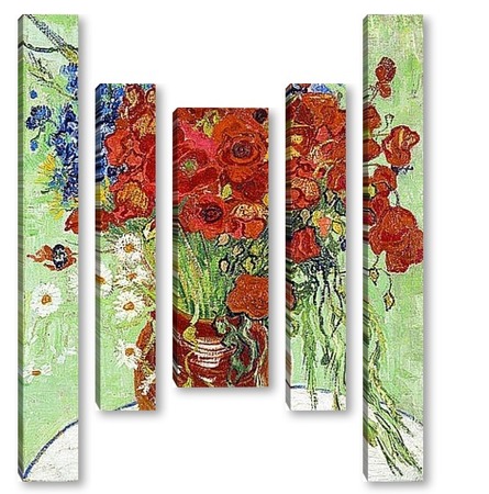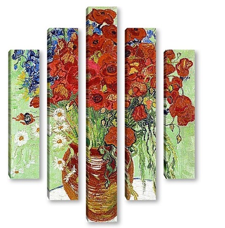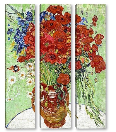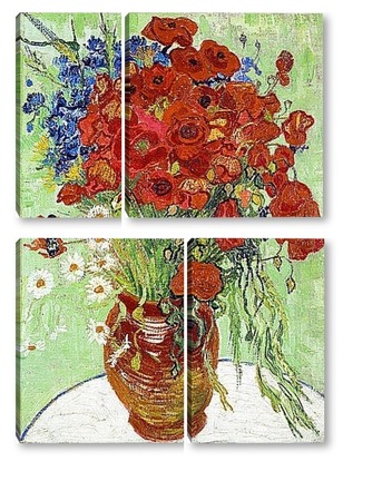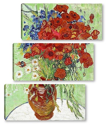 Модульная картина Натюрморт, ваза с ромашками и маками Натюрморт, ваза с ромашками и маками