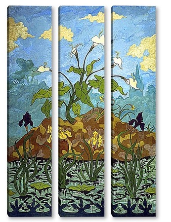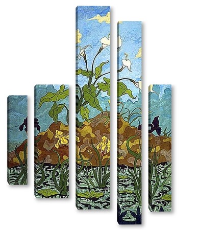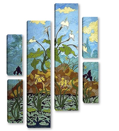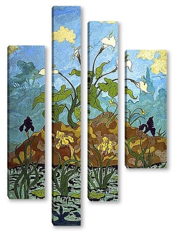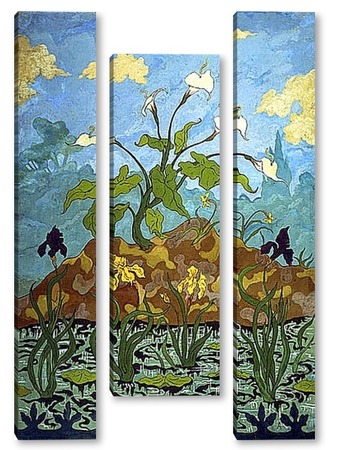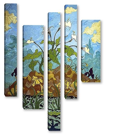 Модульная картина Лилии, пурпурный и желтый Ирис Лилии, пурпурный и желтый Ирис
