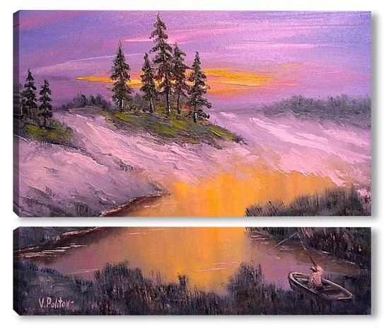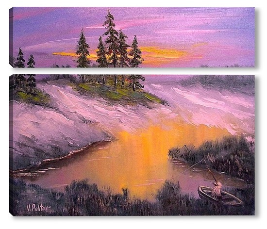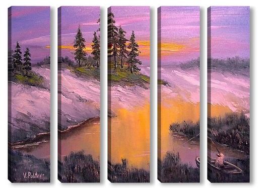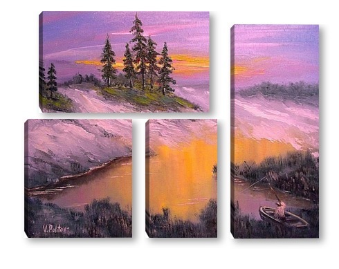 Модульная картина "Рассвет над озером" "Рассвет над озером"