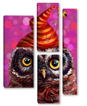 Модульная картина Сова в колпочке с булавкой Сова в колпочке с булавкой