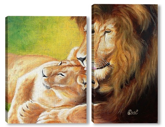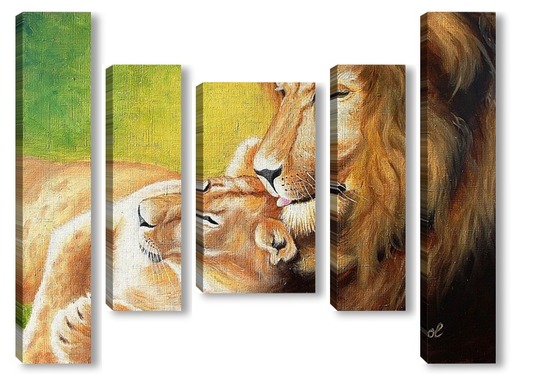 Модульная картина Картина маслом. Львиное семейство. Холст 40х50 Картина маслом. Львиное семейство. Холст 40х50