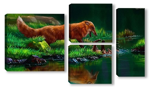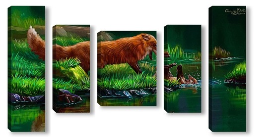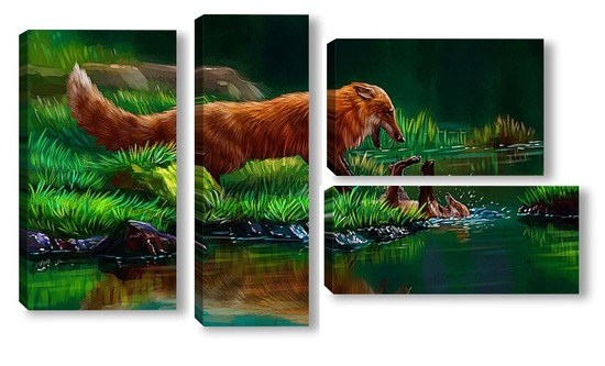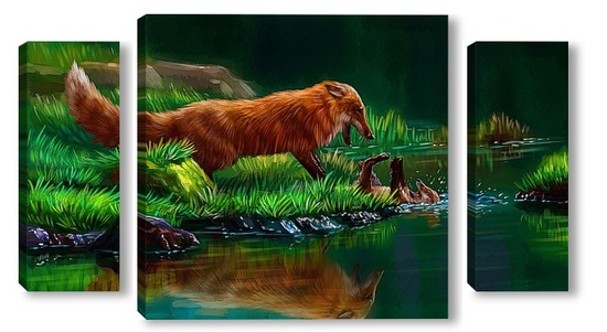 Модульная картина Лиса и лисенок Лиса и лисенок