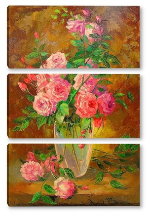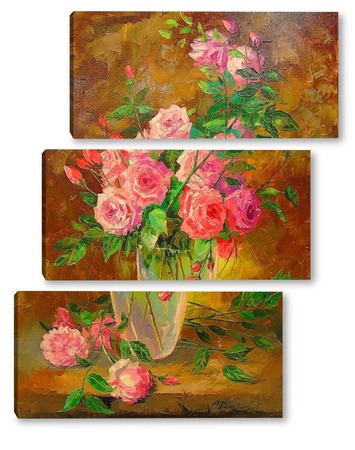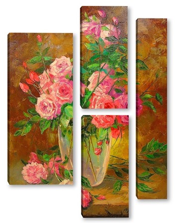 Модульная картина Букет роз в вазе Букет роз в вазе