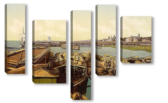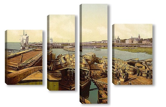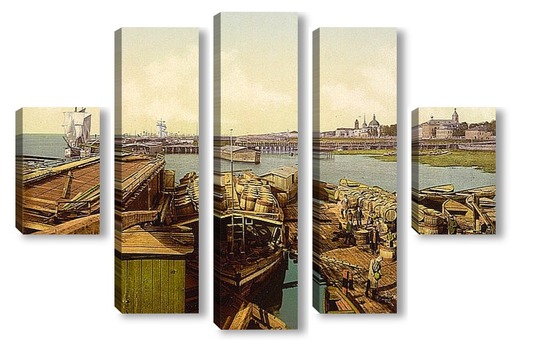 Модульная картина Загрузка трески, Архангельск, Кольский полуостров, Россия. 1890-1900 гг Загрузка трески, Архангельск, Кольский полуостров, Россия. 1890-1900 гг
