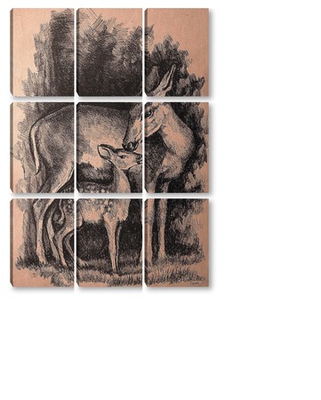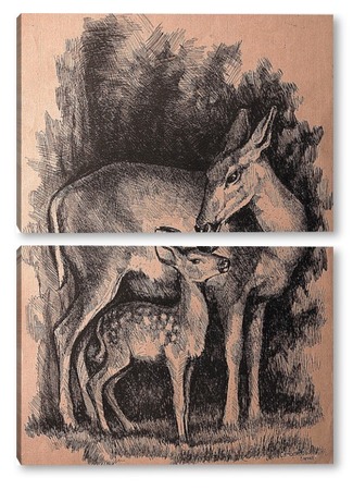 Модульная картина Олени - лань с олененком Олени - лань с олененком