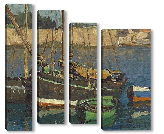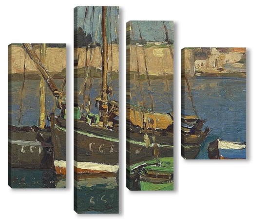 Модульная картина Четыре лодки вдоль гавани Четыре лодки вдоль гавани