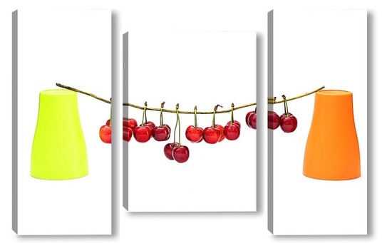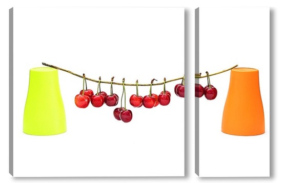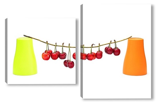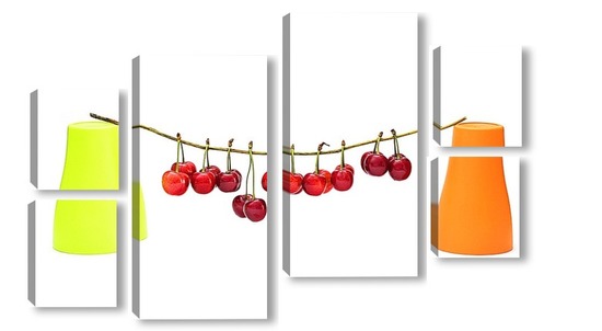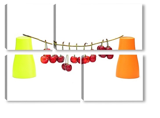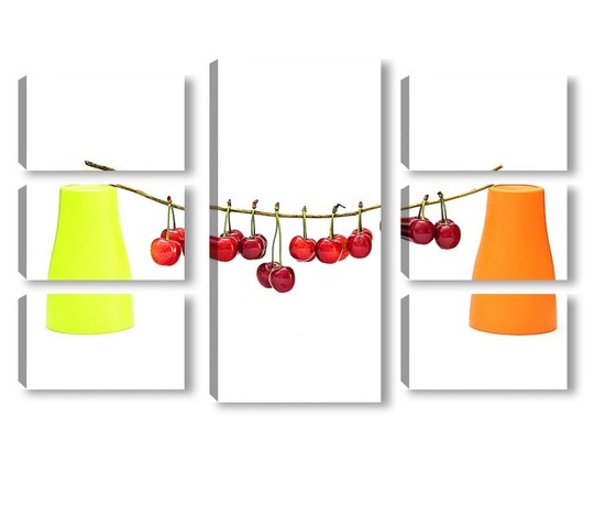 Модульная картина Натюрморт с ягодами черешни и двумя цветными стаканчиками Натюрморт с ягодами черешни и двумя цветными стаканчиками
