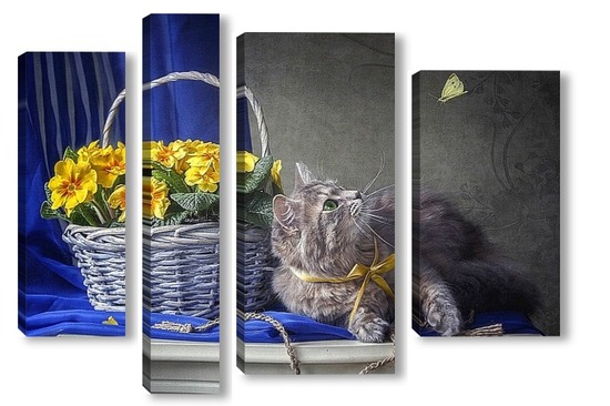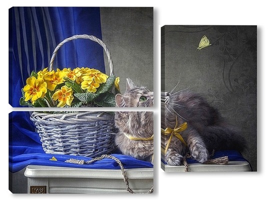 Модульная картина Кошка и бабочка Кошка и бабочка