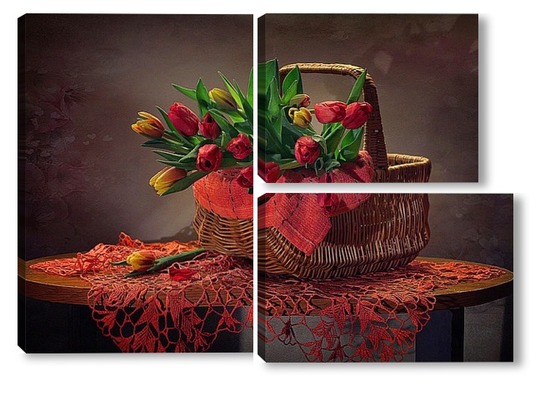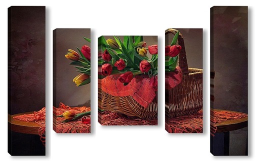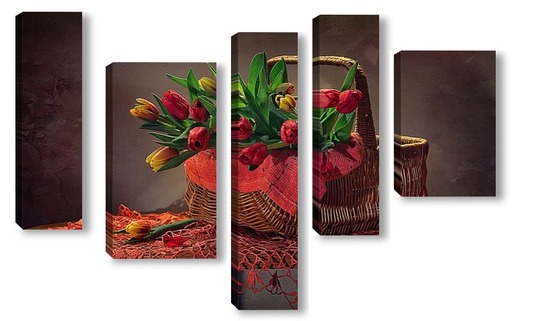 Модульная картина Корзинка тюльпанов Корзинка тюльпанов