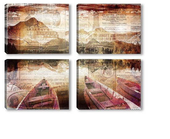 Модульная картина трое в лодке...нет, три лодки трое в лодке...нет, три лодки