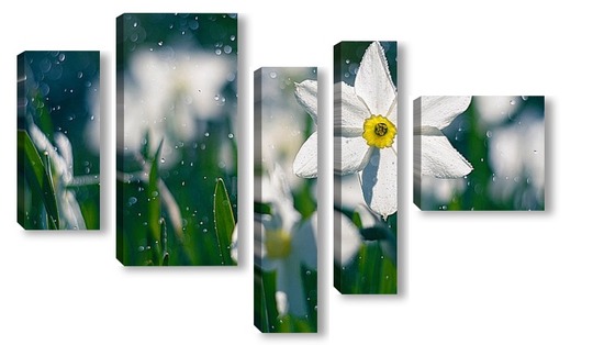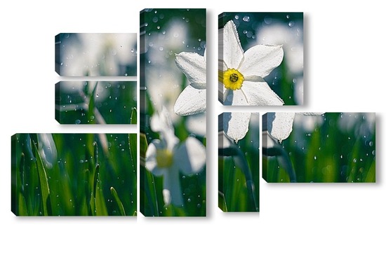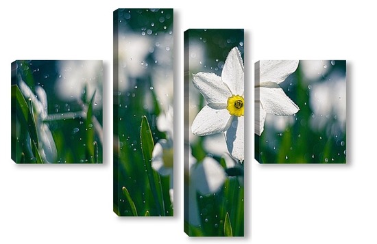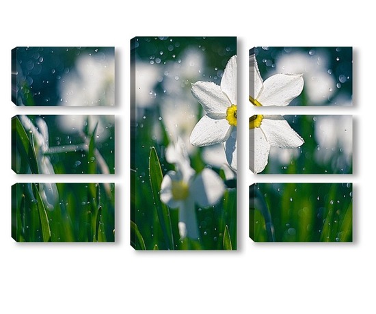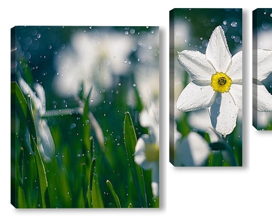 Модульная картина Солнечные нарциссы под дождем Солнечные нарциссы под дождем