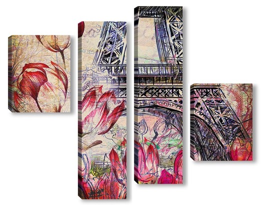 Модульная картина Эйфелева башня с тюльпанами Эйфелева башня с тюльпанами