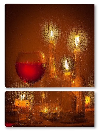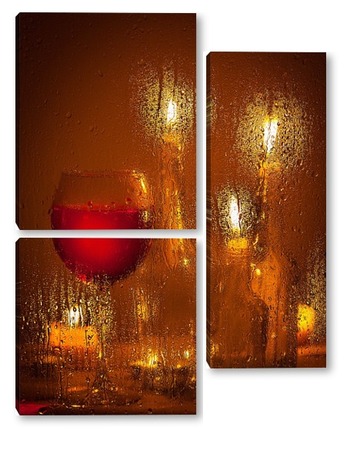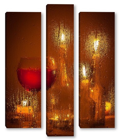 Модульная картина Свечи за мокрым стеклом. Свечи за мокрым стеклом.