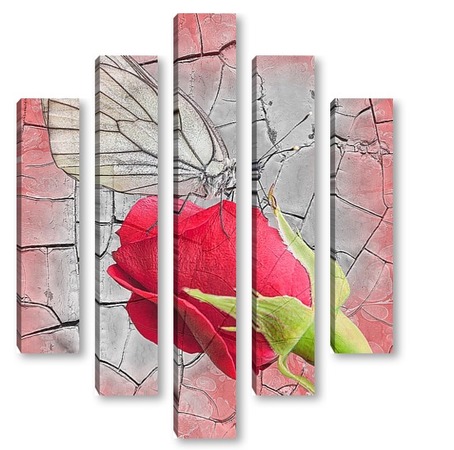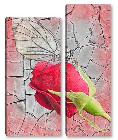 Модульная картина Красная роза с бабочкой Красная роза с бабочкой