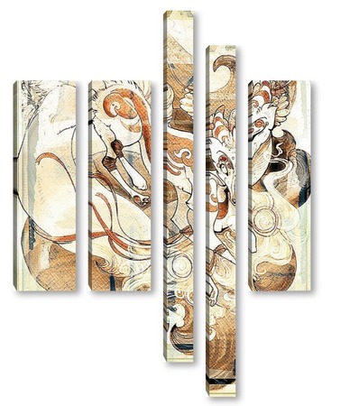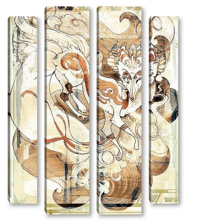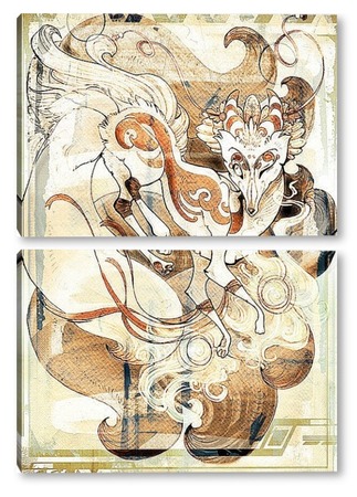 Модульная картина Кицунэ - японская лиса Кицунэ - японская лиса