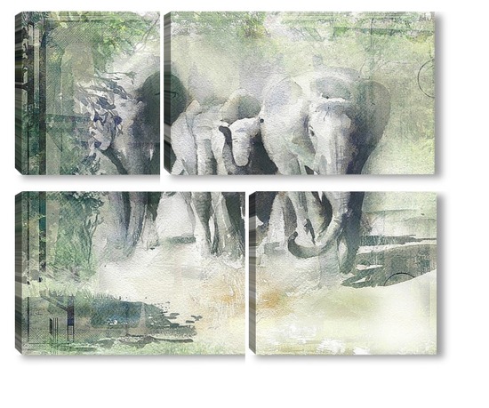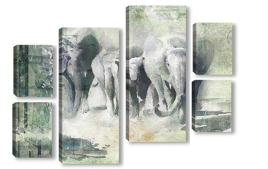 Модульная картина Слоны на прогулке Слоны на прогулке