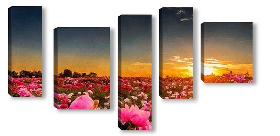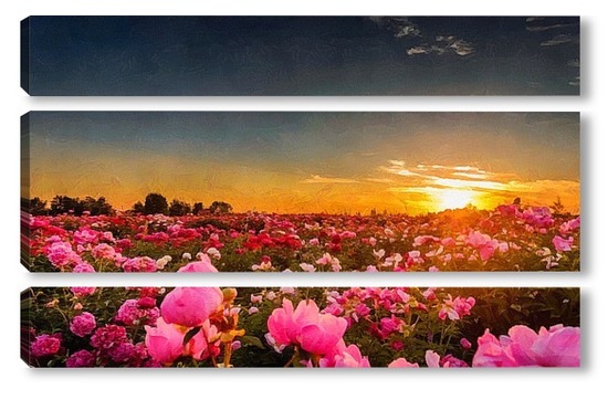 Модульная картина Закат в поле пионов Закат в поле пионов