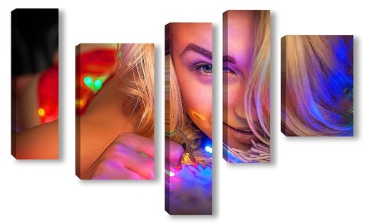 Модульная картина Портрет девушки с гирляндой Портрет девушки с гирляндой
