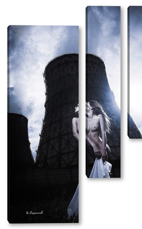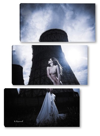 Модульная картина Нагая девушка на фоне электростанции Нагая девушка на фоне электростанции