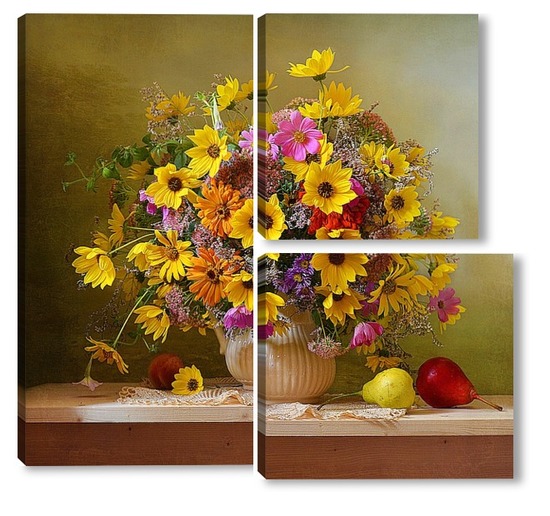 Модульная картина Осенний букет с грушами и персиком Осенний букет с грушами и персиком