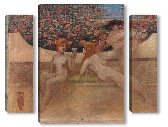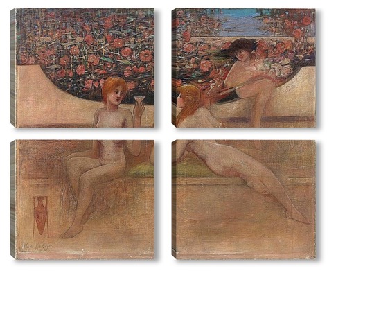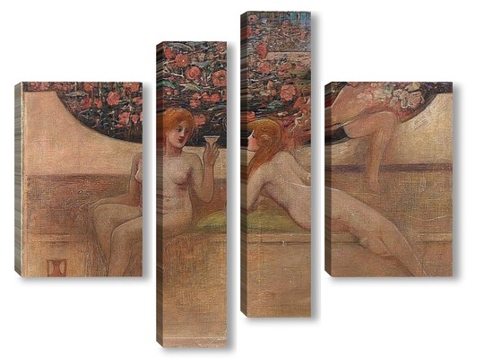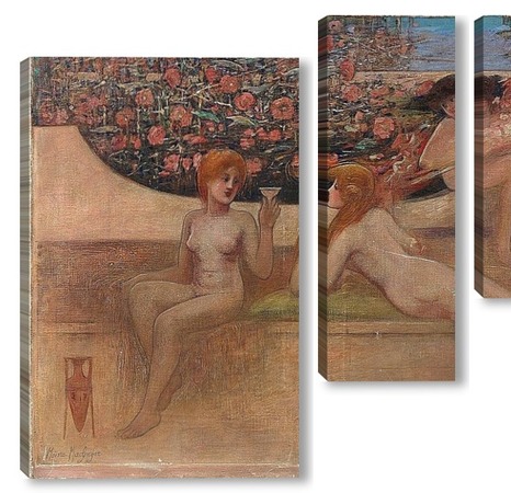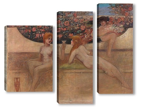 Модульная картина Две голые перед стеной, цветы Две голые перед стеной, цветы