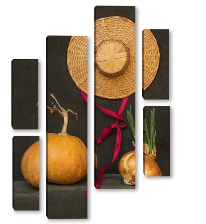 Модульная картина Натюрморт с тыквой, луком и шляпой Натюрморт с тыквой, луком и шляпой