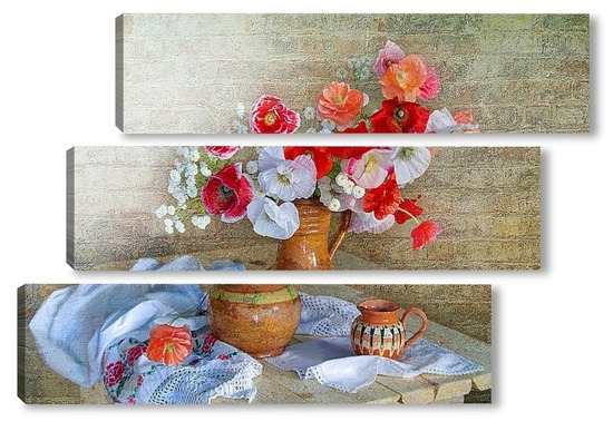Модульная картина Натюрморт "Маки в крынке" Натюрморт "Маки в крынке"