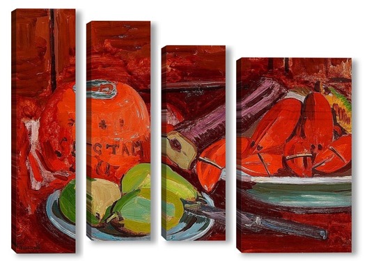 Модульная картина Натюрморт с фруктами и моллюсками Натюрморт с фруктами и моллюсками