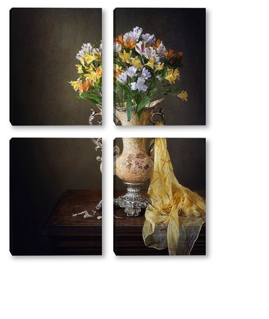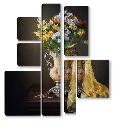 Модульная картина Натюрморт с букетом перуанских лилий Натюрморт с букетом перуанских лилий