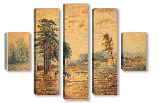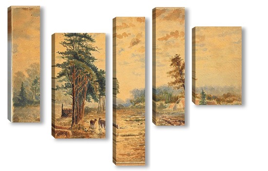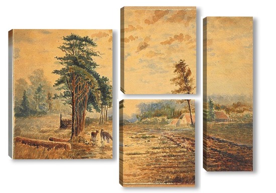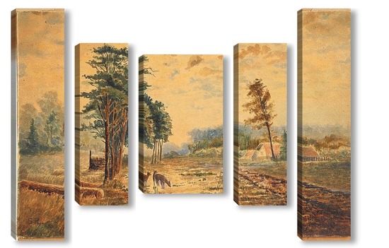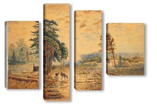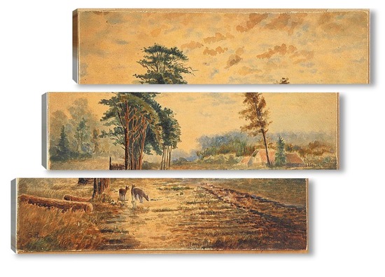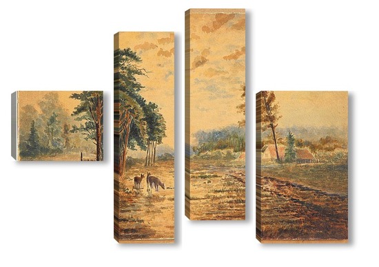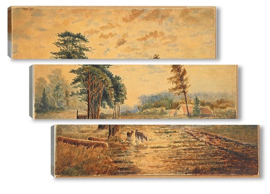 Модульная картина Три оленя возле деревни Три оленя возле деревни