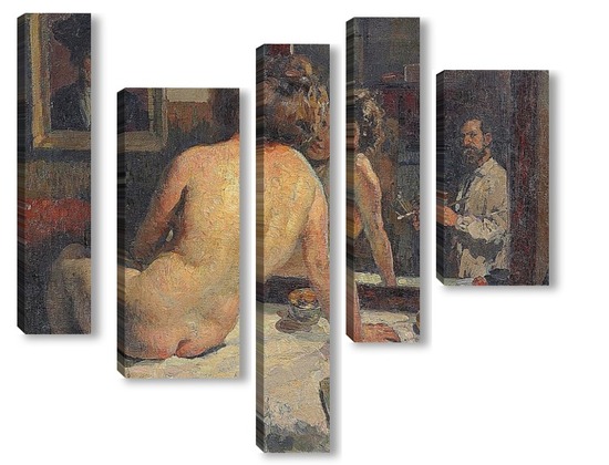 Модульная картина В ателье. Автопортрет художника с его моделью В ателье. Автопортрет художника с его моделью