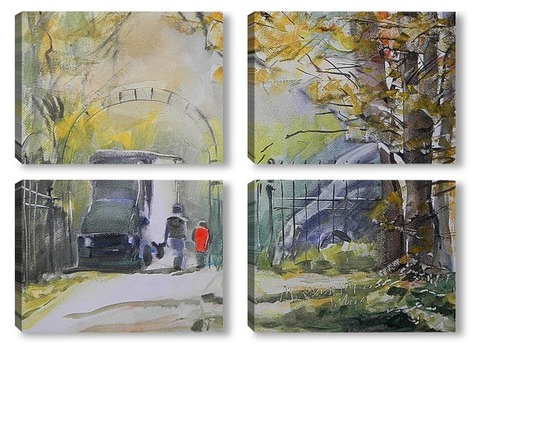 Модульная картина Где то в Алтуфьево акварель Где то в Алтуфьево акварель