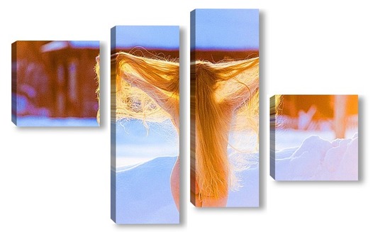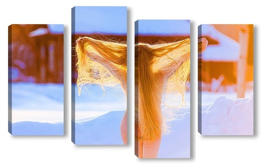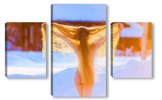 Модульная картина Нагая девушка зимой в деревне Нагая девушка зимой в деревне