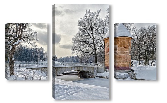 Модульная картина Зима в Павловсе. Пиль-башня и Пильбашенный мост. Зима в Павловсе. Пиль-башня и Пильбашенный мост.