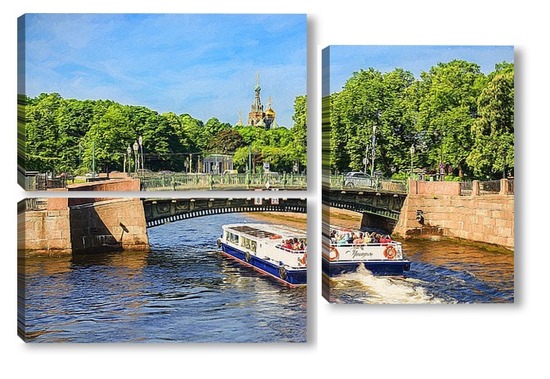 Модульная картина На углу Мойки и Фонтанки. На углу Мойки и Фонтанки.