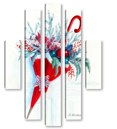 Модульная картина Зонтик Миссис Клаус Зонтик Миссис Клаус