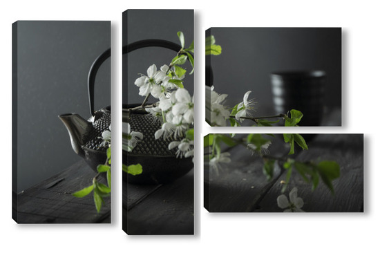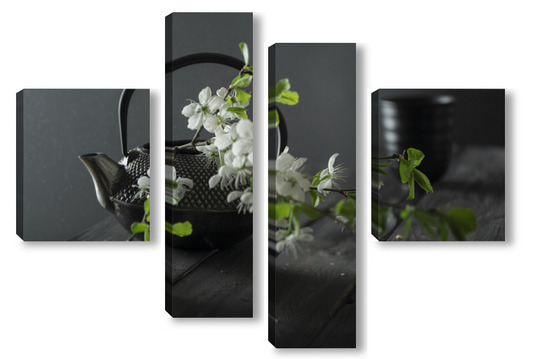 Модульная картина Натюрморт с чайником и чашечкой. Натюрморт с чайником и чашечкой.