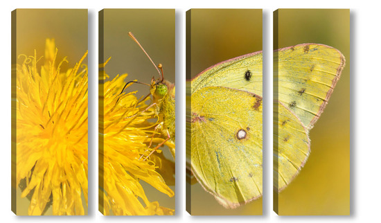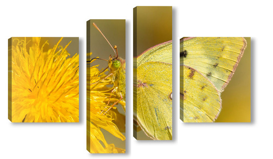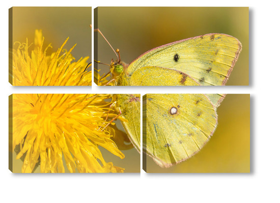 Модульная картина Красивая бабочка на цветке одуванчика Красивая бабочка на цветке одуванчика