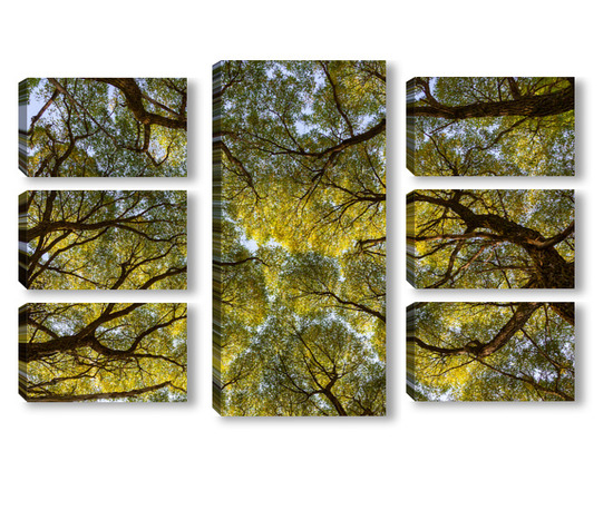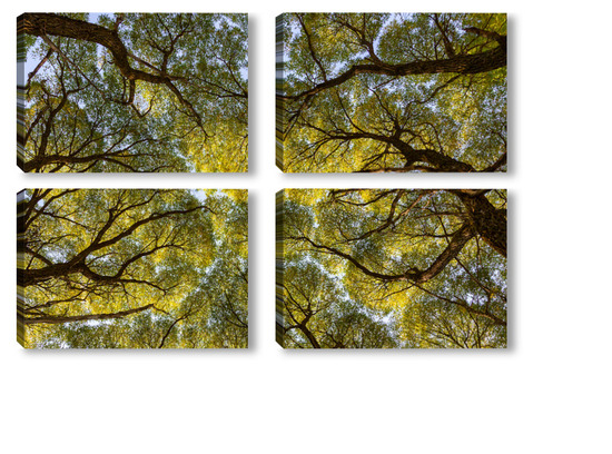 Модульная картина Кроны деревьев с ветвями и листьями Кроны деревьев с ветвями и листьями