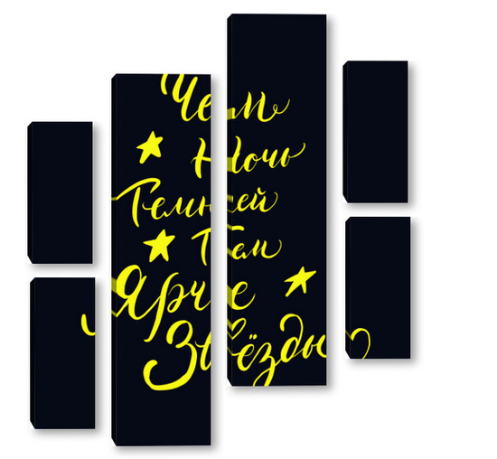 Модульная картина Леттеринг фраза "Чем ночь темней, тем ярче звёзды" Леттеринг фраза "Чем ночь темней, тем ярче звёзды"