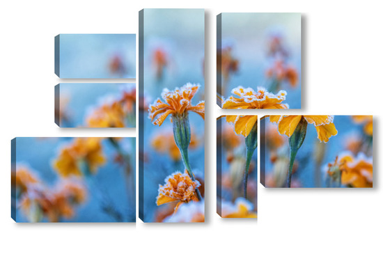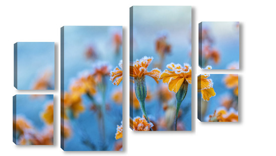 Модульная картина Бархатцы в инее Бархатцы в инее