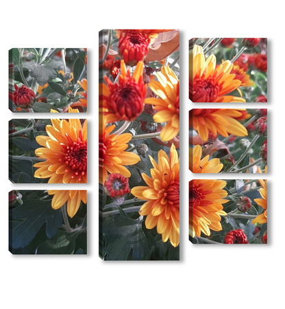 Модульная картина Хризантемы зацвели Хризантемы зацвели
