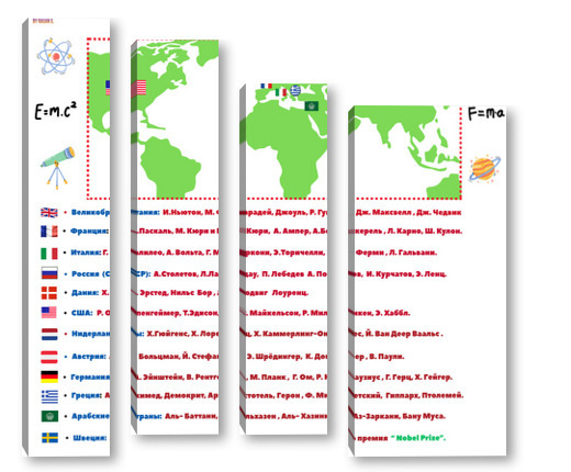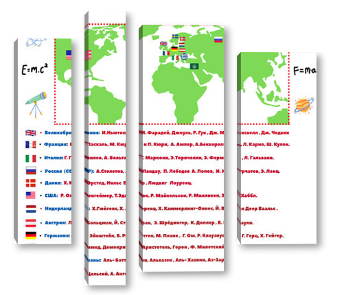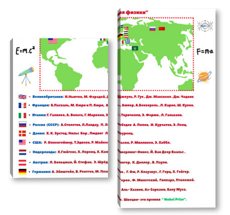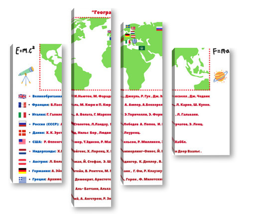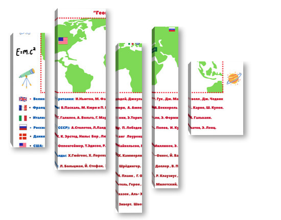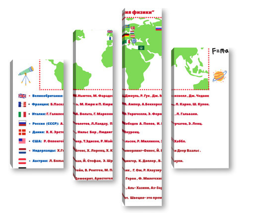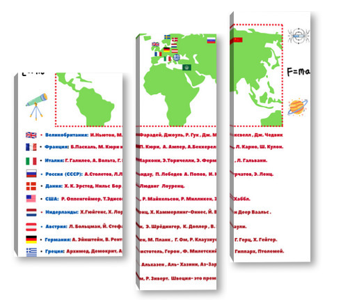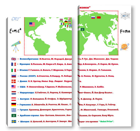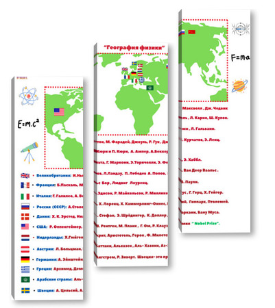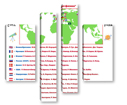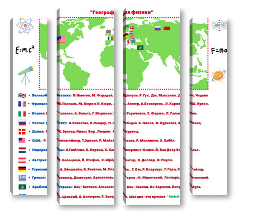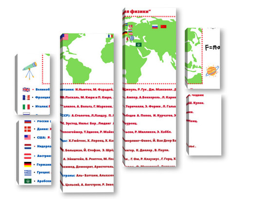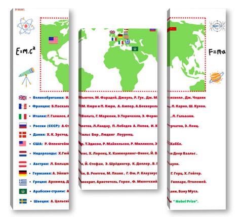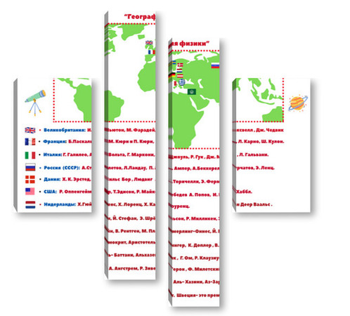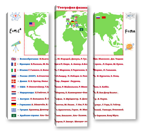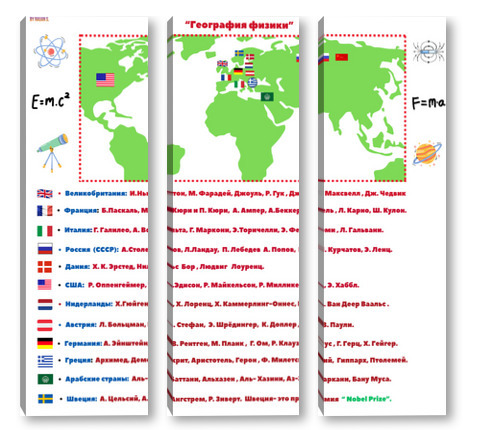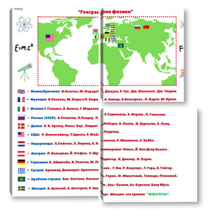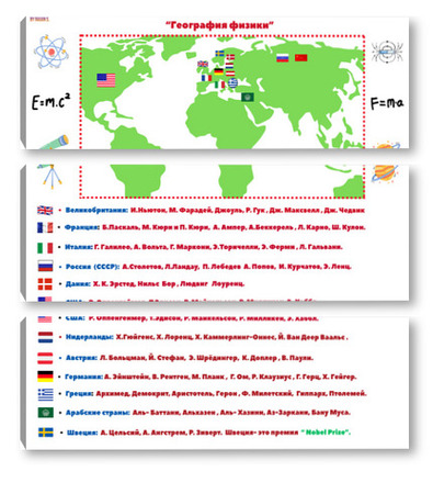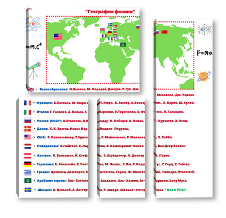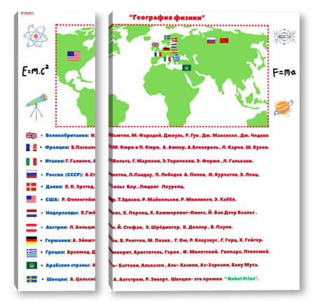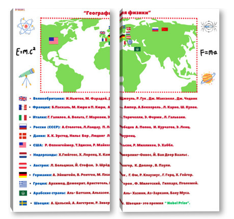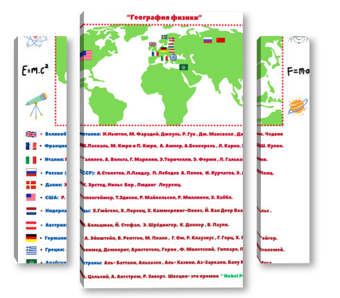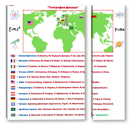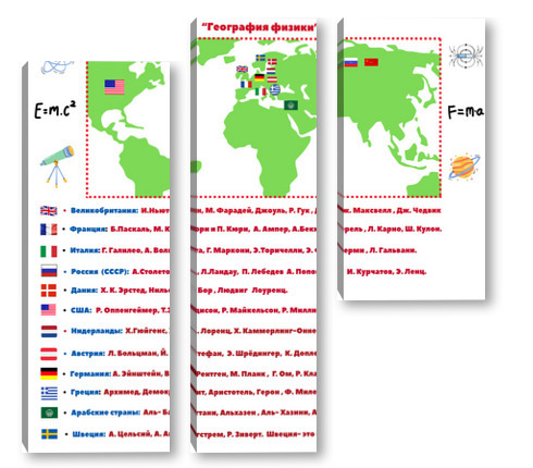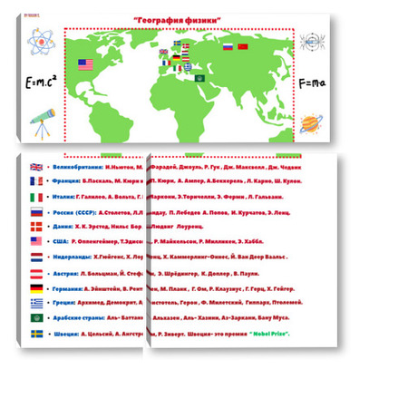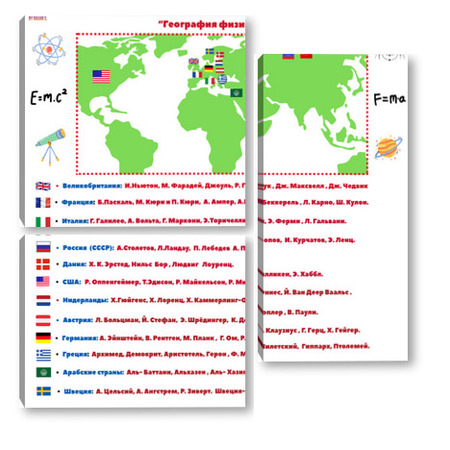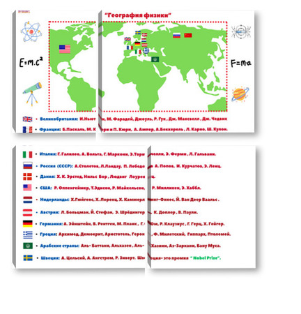 Модульная картина Плакат для кабинета физики " География ученых-физиков" Плакат для кабинета физики " География ученых-физиков"