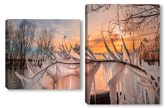 Модульная картина Сосульки на ветви дерева Сосульки на ветви дерева